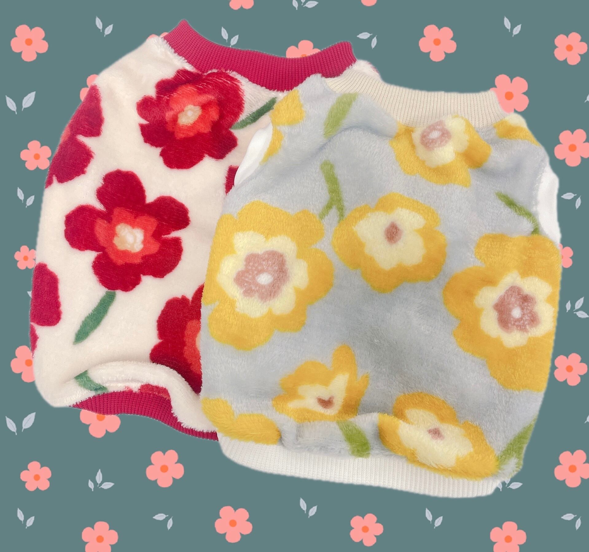 ずり落ちにくい新作犬服オーダー★あったか〜北欧花柄ボアタンクトップ黄色♪中型犬小型犬フレブル服パグ服フレンチブルドッグ服中型犬小型犬ボストンテリア服